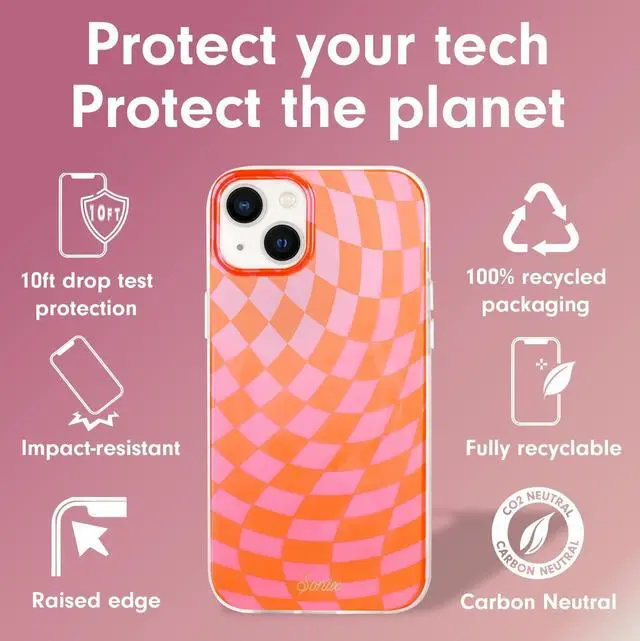 Drop Tested: Our protective case features a scratch-resistant coating, raised shock-absorbent sides, grooved impact-resistant corners, and a raised edge for camera protection ^^ Checkmate! Is it us or is the print of the year checkered? This ultra iridescent case checks out (get it? ) featuring all the protection of a Sonix case plus the hottest print ^^ Protect Your Tech and