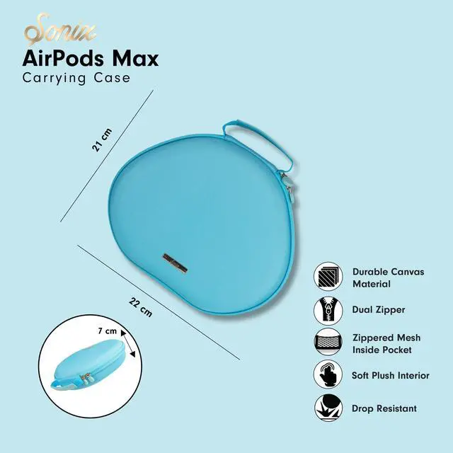 Protect your AirPods Max headphones with this durable, travel carrying case. Thoughtfully designed to support Sleep Mode and store with your original Smart Case on. Softshell case features a premium canvas exterior and anti-scratch, fabric-lined interior. Includes an internal mesh zippered pocket convenient for cables, chargers, adapters, and other small accessories. Shock absorbent molded interior reduces movement and enhances portability. Compatible with Apple AirPods Max.