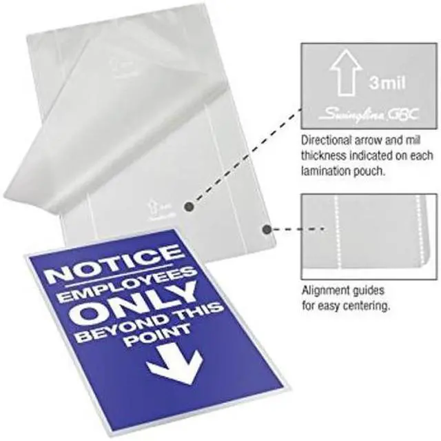 Fusion EZUse pouches simplify the laminating process with three helpful features. Every pouch includes alignment guides for perfect centering, a mil thickness icon for easy identification of pouch thickness, and a directional arrow to indicate which way the pouch should be inserted into the machine. Choose the Swingline GBC Lamination Pouches That are Right for You