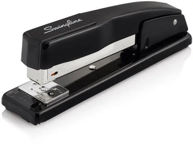 This sturdy, long-lasting stapler is one of the stars of Swingline's desktop stapling product line. A specialized inner rail delivers reliable, jam-resistant stapling. The stapler is designed for desktop use. It holds a full strip of 210 staples. The helpful low-staple indicator lets you know when it's time to refill. This stapler securely fastens up to 20 sheets of paper and works best with standard size S. F. 4 Premium Staples. Staples have a legs. Versatile stapler is also useful for tacking paper to bulletin boards or other vertical surfacessimply open it by pressing a release at the bottom of the stapler.