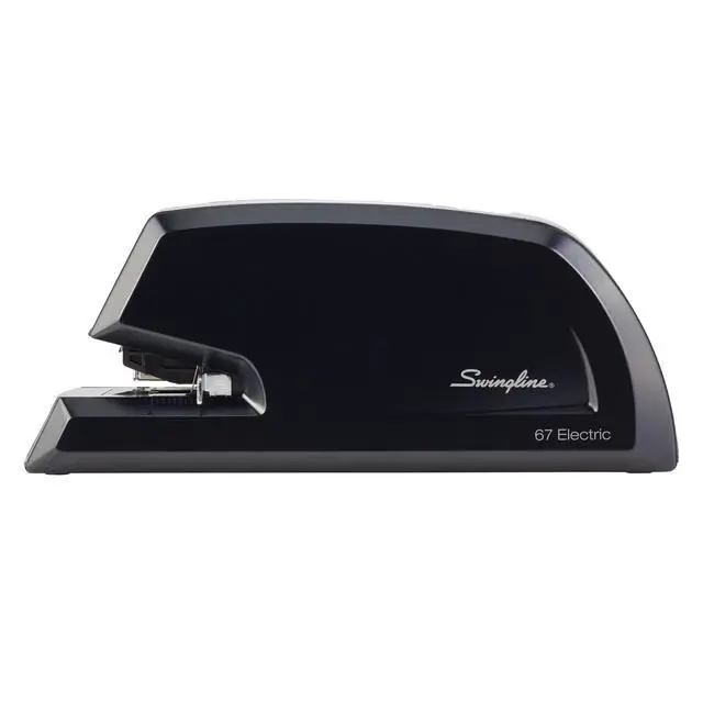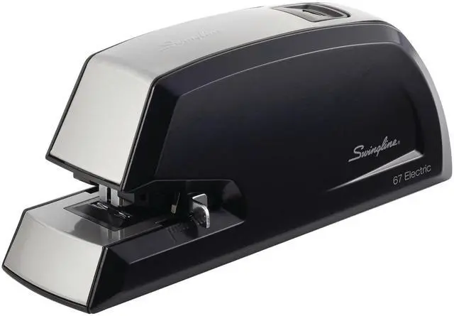 Designed for frequent use, this durable metal Swingline Commercial Electric Stapler provides long-lasting performance. Staples up to 20 sheets at a time. For best results, use Swingline S. F. 4 staples. Great for busy offices, this electric stapler is will get stapling jobs completed more quickly and efficiently. Easy front-loading QuickLoad system ejects the staple magazine with the push of a button for faster staple refills. Includes an adjustable paper depth guide so its easy to choose how far the staple is positioned from the edge of the paper.