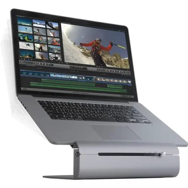 Tilt design cools laptop by helping heat escape and brings screen closer.