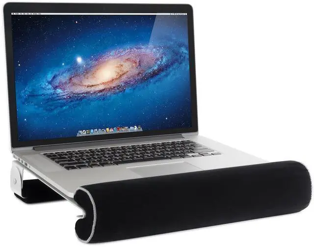 Versatile: The iLap is designed to let you work comfortably on your lap and at your desk. An added convenience is the ability to type directly on your laptop's keypad so you don't have to use an external keyboard. What's in the boxiLap laptop computer holder, detachable front cushionProduct DescriptionThe award-winning, patented ilap is a versatile stand that lets you use a laptop comfortably on your lap or on a desk. As a lap stand, The ilap keeps you cool by shielding your body from the laptop's heat, and it does so comfortably with its two velvet cushions. The front cushion supports your wrist while you type and the back swivel base contours to your lap. The ilap's lightweight aluminum base acts as a heat sink to keep your laptop cool too, So it'll run more efficiently and last longer. As a desk stand, The ilap provides better ergonomics by raising the laptop screen higher to reduce neck and shoulder strains. It also tilts The keyboard so you can type with your wrist straight to prevent carpal tunnel syndrome. An external keyboard is not required. The ilap 15-inch w fits the Apple MacBook Pro 15-inch.