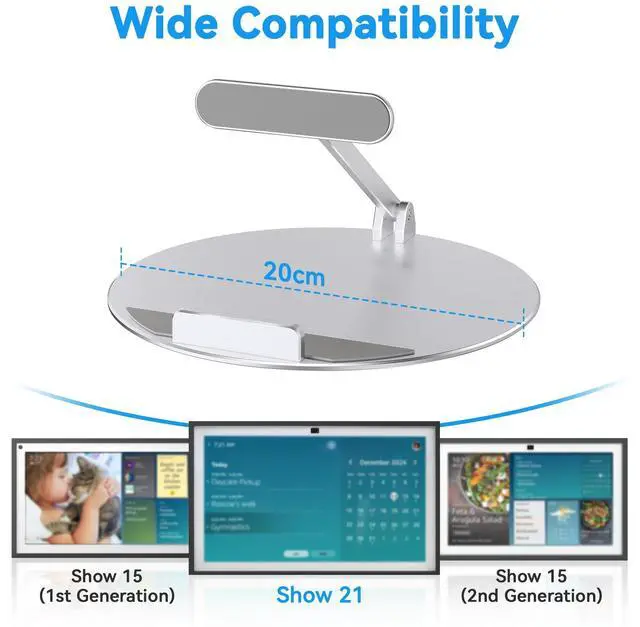 Compact Design for Show 21 & Show 15: The echo show 21 adjustable stand is designed for 21-inch Show 21 and all generations of Show 15 (Device is not included)