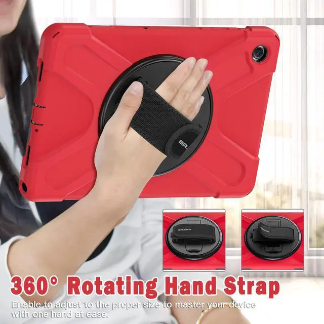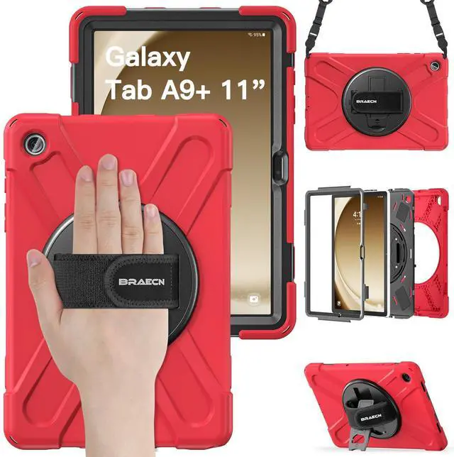 BRAECN for Samsung Galaxy Tab A9 Plus 11 Inch Kids Case 2023, Heavy Duty Silicone Case with Screen Protector & 360 Rotating Hand Strap&Stand/Shoulder Strap for Galaxy A9 Plus 11" - Red