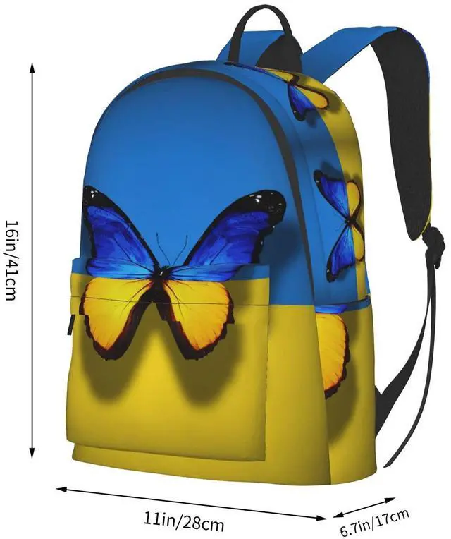 FeHuew 16 inch backpack Ukrainian Flag Butterfly Laptop Backpack Full Print School Bookbag Shoulder Bag for Travel Hiking Camping Daypack