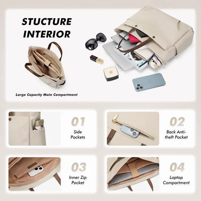 [(Versatile Design)] - Our laptop tote bag is thoughtfully designed with two compartments, a dedicated padded laptop pocket, an interior slip pocket, and a zippered pocket. This practical structure ensures you can easily organize and access your essentials while on the go.
