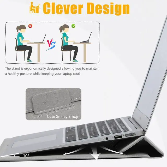Can be Used as a Stand: The flap can be folded in a triangular manner, turning the case into a laptop stand that is comfortable for typing as well as helps keep your laptop cool