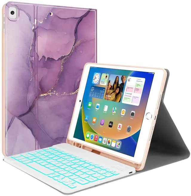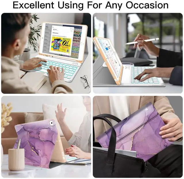 Backlit Keyboard Case for iPad 10.2 9th 8th 7th Generation - Wireless Detachable Keyboard Thin Slim Smart Folio Stand Tablet Cover Case for iPad 10.2 Inch/iPad Air 10.5"(3rd Gen)/iPad Pro 10.5",Purple