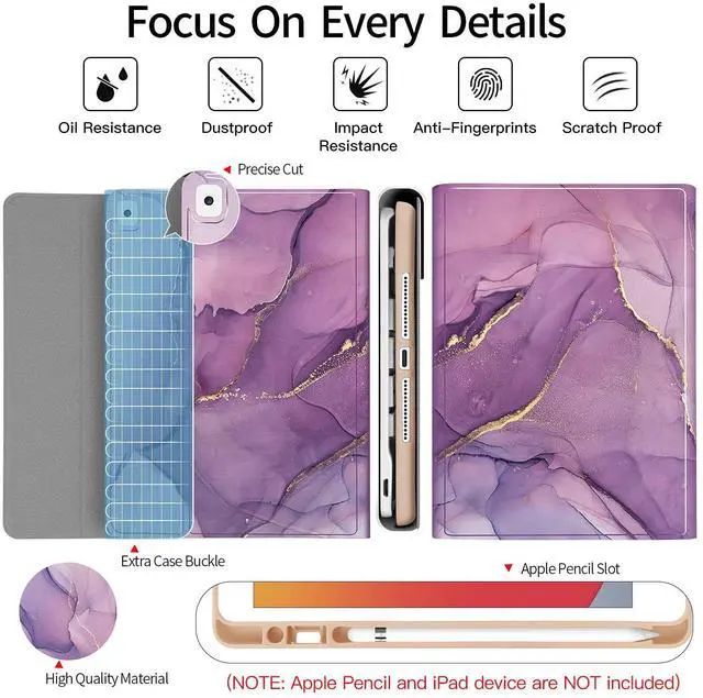 [(Built-in Apple Pencil Holder)] The special designed Apple Pencil slot will protect your Pen more carefully from rolling or missing, easily to carry your iPad pencil with