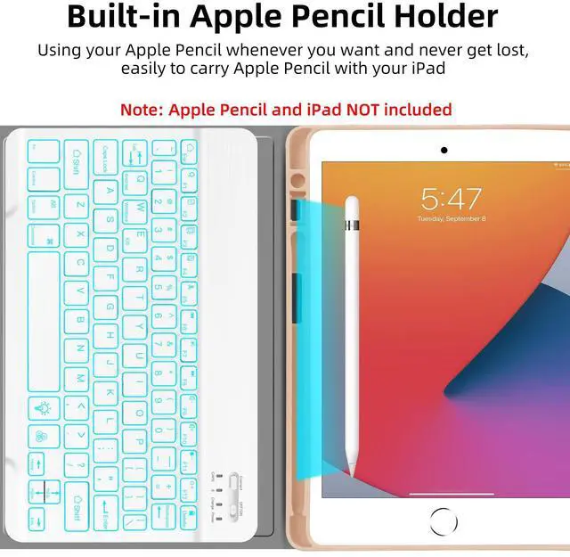 [(Detachable Backlit Rechargeable Keyboard)] 7 colors back-light make typing fun and easy in the dark/night, just choose your favorite colors. The Bluetooth connection is stable and mechanical scissor keys are quiet with rebound feature. With the U.S chipset, type more stable and fast. Rechargeable battery make keyboard can work wireless, provide the freedom to read or work anywhere at any time