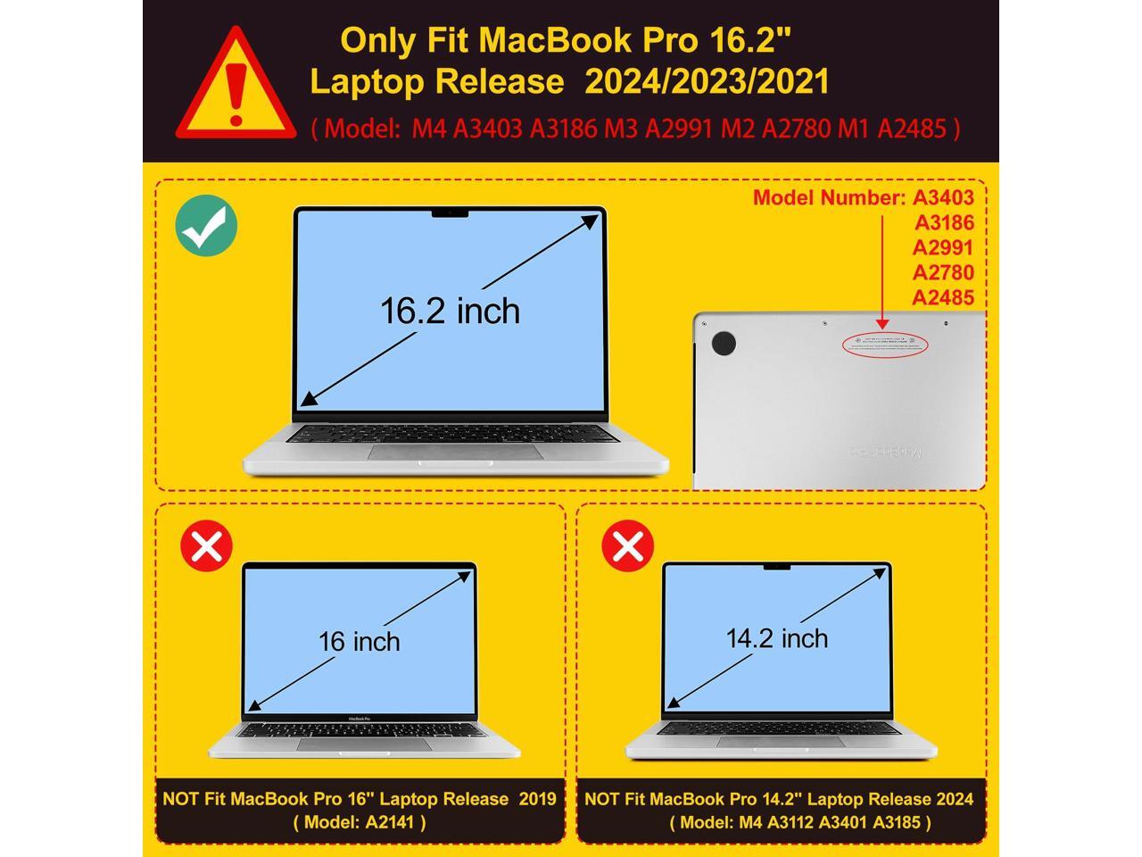 - Compatibility: Only Compatible for 2021/2022/2023/2024 Newest MacBook Pro 16 inch Pro /Max Model M1 A2485/M2 A2780 /M3 A2991/M4 A3403 A3186 (with Touch ID) Laptop