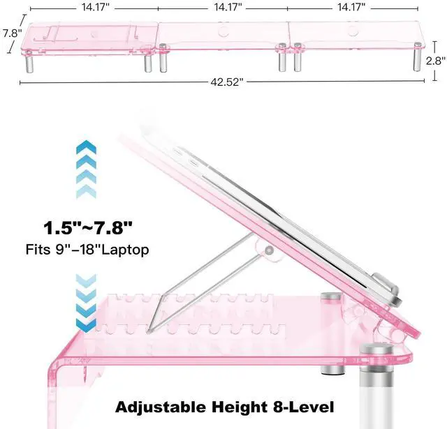 [(Adjustable Height)] Our acrylic dual monitor stand is equipped with an adjustable laptop stand with a total of 8 different angles, allowing you to easily adjust the height of the stand to ensure the best screen position to meet your personal needs and preferences for optimal comfort