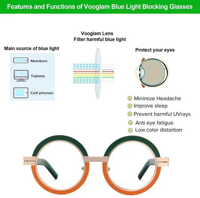 > Vooglam glasses are specially designed to filter out harmful blue light.