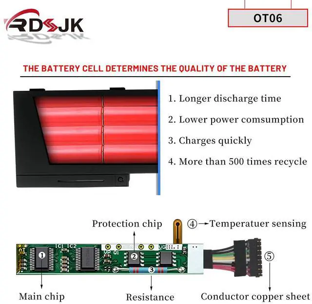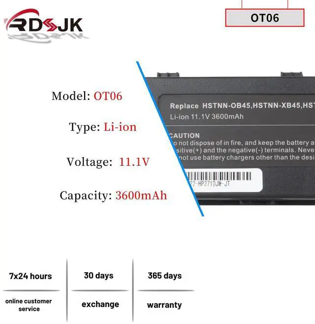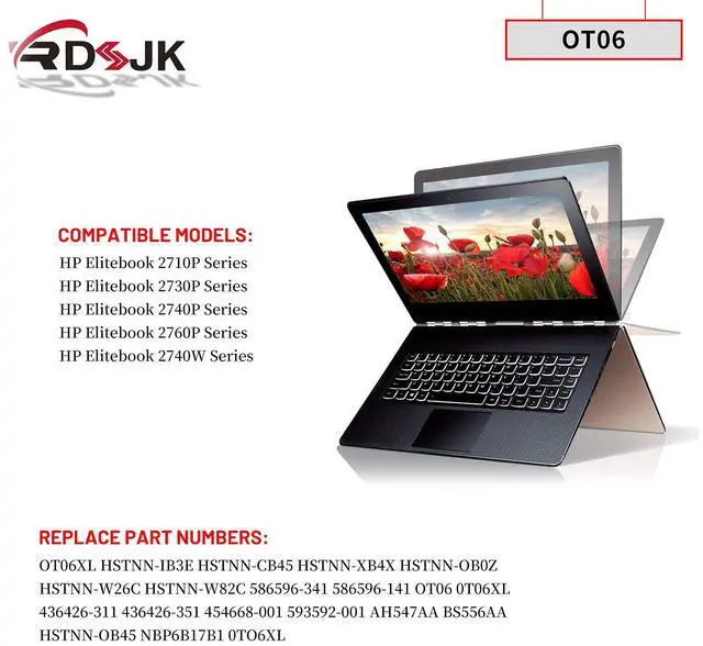 RDSJK OT06XL OT06 Laptop Battery for HP Elitebook 2710P 2730P 2740P 2740W 2760P Series HSTNN-IB3E HSTNN-CB45 HSTNN-OB45 HSTNN-W26C HSTNN-W82C 436426-311 436426-351 454668-001 593592-001 11.1V 3600mAh