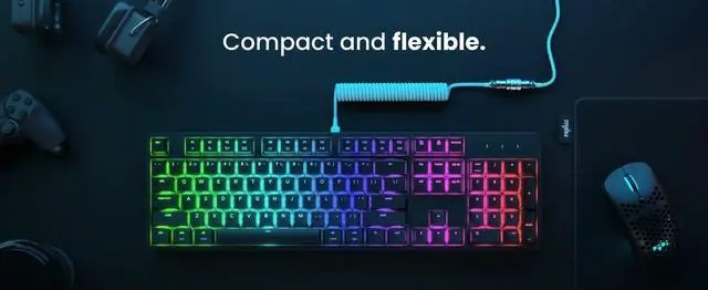 PWNAGE Ultra Custom Coiled Aviator USB C Cable for Gaming Keyboard, Double-Sleeved Mechanical Keyboard Cable with Detachable Metal Aviator, 1.8M USB-A to USB-C, Mint Color (Mint)