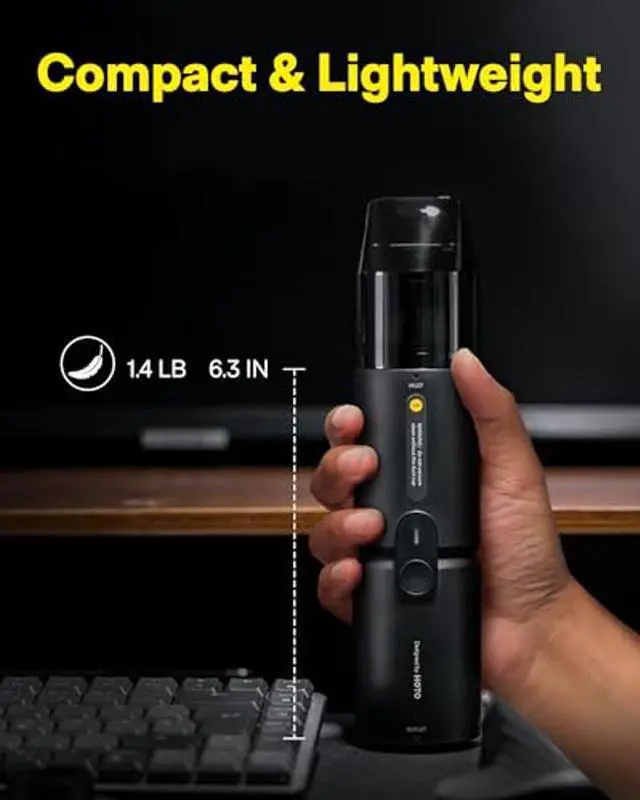 [(Powerful 15000Pa Suction)] Equipped with a brushless motor, the HOTO desk vacuum cleaner provides powerful suction of 15,000Pa which can effectively sucks up dust debris in desktop, computer, car crevices. Vacuum sealing function enables you to optimize storage space and free up more room for other belongings.