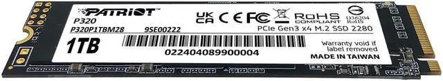 Patriot Memory P320 1TB Internal SSD - NVMe PCIe Gen 3x4 - M.2 2280 - Solid State Drive - P320P1TBM28
