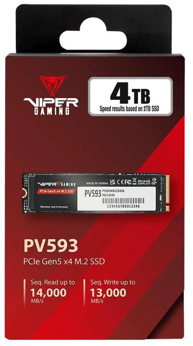 Introducing Patriot Memorys newest SSD; the PV593, a PCIe M. 2 SSD with a Gen5 x 4 ultra speed link! Designed for gamers, professionals, and creatives of all kinds, the PV593 is the newest invention in modern storage. With its PCI Gen5 x 4 interface, bandwidth and speed are faster than ever with read speeds up to 14, 000MB/s. To keep it cool under pressure, the PV593 is adopted by SMI SM2508 controller and created with 6nm fabrication process and advanced thermal dispassion management system to prevent overheating