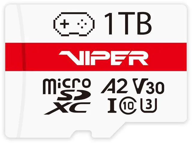 Now introducing the Viper Gaming V30 A2 microSD, a microSD card to elevate your device to the next level. With up to 1TB of space, there is storage for anything from old photos to new games. The V30 A2 microSD allows for lightning-fast game loading, allowing you to play anywhere and anytime, with read speeds up to 100MB/s and write speeds up to 90MB/s. For creatives looking to record their next hit video, this microSD is designed with 4k video recording support and features a video speed class of V30, ensuring it can handle higher video resolutions and recording features.