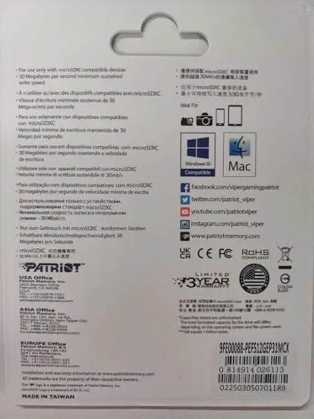 Patriot's EP Series High Endurance microSD is designed specifically for durability and critical systems where maximum endurance is required. Rest assured as the microSD card is always prepared to record in harsh environments and is waterproof and dust resistant, allowing you to capture every second of footage. The EP Series High Endurance microSD card is the essential solution for capturing crucial videos from your dash cam, home monitoring, or security system.