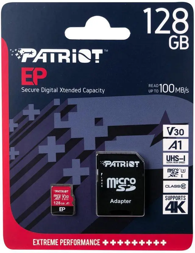 The Patriot EP A1 micro SD card comes with an A1 app classification rating so it's ready to be used seamlessly with your Android device. Not only can you store apps onto the EP A1 directly, you are also able to run the apps, thereby making your phone immensely faster and freeing up space on your device. The EP A1 also has a V30 classification and supports 4K video recording so it's ready for the action when you need it. With read speeds up to 100MB/s and write speeds up to 80MB/s, the EP A1 micro SD card is the perfect addition to your Android phone or tablet.