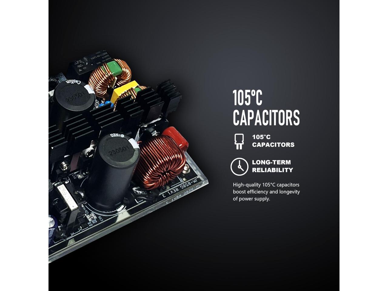 - PREMIUM CAPACITORS: This power supply 850w utilizes 100% High-Performance capacitors that withstand temperatures of up to 105°C. It guarantees superior power supply stability for your gaming and e-sports needs.
