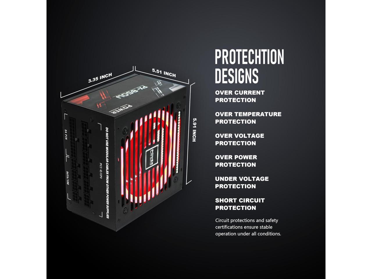 - ADVANCED SAFETY FEATURES: The 850 watt power supply has an active PFC that ensures 100V-240V wide voltage self-adaptive input, catering to voltage-unstable regions. It is equipped with an array of protection mechanisms: OVP/OCP/OPP/OTP/UVP/SCP.
