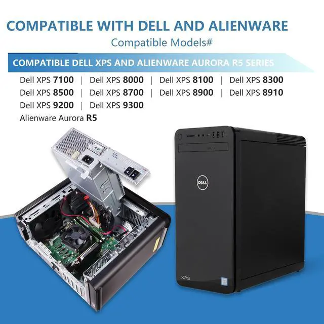 Compatible Models: HU460AM-01 460W power supply is compatible with Dell XPS series power supplies 8930, 8920, 8910, 8900, 8700, 8500, 8300, 8100, 8000, 7100, Alienware Aurora R5 power supplies.