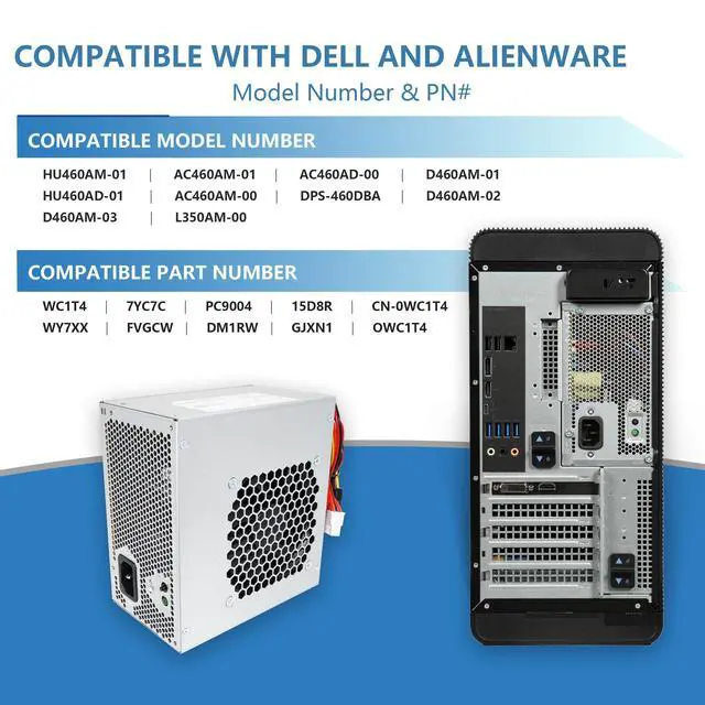 Replacement model: HU460AM-01 460W power supply replaceable dell power supply: HU460AD-01, AC460AM-01, AC460AD-00, AC460AM-001, D460AM-01, D460AM-02, D460AM-03, DPS-460DBA, L350AM-00. WC1T4, 7YC7C, PC9004, WY7XX, FVGCW, DM1RW, 15D8R, OWC1T4, GJXN1, CN-0WC1T4 ^^