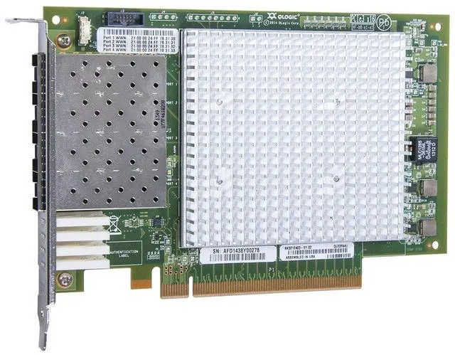 The QLE2694U Adapter is the industry's first Enhanced Gen 5, Quad-Port, 16Gbps Fibre Channel adapter that can be field upgraded to 32Gbps. The QLE2694U Adapter boasts industry-leading native Fibre Channel performance with extremely low CPU usage with full hardware offloads. GEN 6 READY, ENHANCED GEN 5QLogic®'s unique Enhanced Gen 5 Fibre Channel technology provides the industry's first 16Gbps adapter that can be field upgraded to Gen 6 by simply updating the software and swapping out the SFP transceivers. QLogic's Enhanced Gen 5 solution offers higher per-port performance (up to 650K IOPS) with lower power consumption (3W per port). In addition, QLogic StorFusion technology delivers streamline provisioning, guaranteed Quality of Service (QoS), improved resiliency while addressing the needs of IT organizations that require reliability, integrated management and guaranteed network performance. Enhanced Gen 5 technology resolves data center complexities by enabling a storage network infrastructure that supports powerful virtualization features, application-aware services, and simplified management. The QLE2694U Adapter provides advanced storage networking features capable of supporting the most demanding virtualized and private cloud environments while fully leveraging the capabilities of high-performance 16/32Gbps Fibre Channel and all-flash arrays (AFAs).
