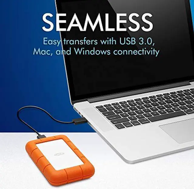 Travel with capacity of 5TB in an ultra compact portable hard drive--LaCie Rugged Mini. Seamlessly connect to USB 3. 0 computers, transfer content fast with speeds of up to 130MB/s, and trek confidently with all terrain durability of drop, crush, and rain resistance. This drive even includes a complimentary one month membership to the Adobe Creative Cloud All Apps Plan for access to awesome photo and video editing apps, as well as a two year limited for long term peace of mind.
