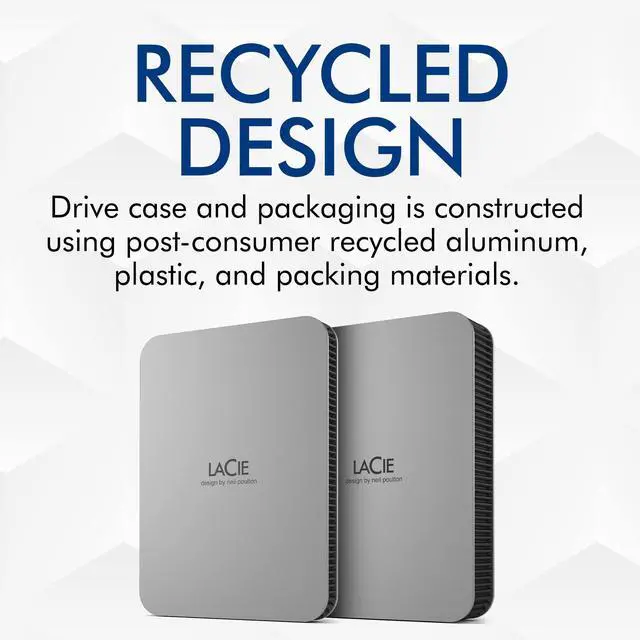 LaCie Mobile Drive is the nexus of portability and capacity. Encased in a sleek Neil Poulton design, each drive is constructed using post-consumer recycled materials. Work with PC, Mac, and iPad USB-C, just plug-in and go. One-click or automatic backup makes file storage extra smooth, plus up to 5TB of capacity makes plenty of room for photos, playlists, docs, and more.