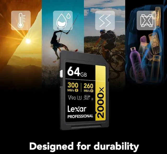 Lexar Professional 2000x SDHC/SDXC UHS-II cards let you quickly capture and transfer high-quality photos and extended lengths of Full-HD and cinema-quality 4K video, with a read transfer speed up to 300MB/s (2000x). The cards also leverage UHS-II technology (UHS Speed Class 3 (U3) ) for high-speed performance, so you'll power through post-production with super-fast file transfer from card to computer. This dramatically accelerates workflow from start to finish, so you can save time and get back to the business of photography. These cards also come with a limited lifetime product support.
