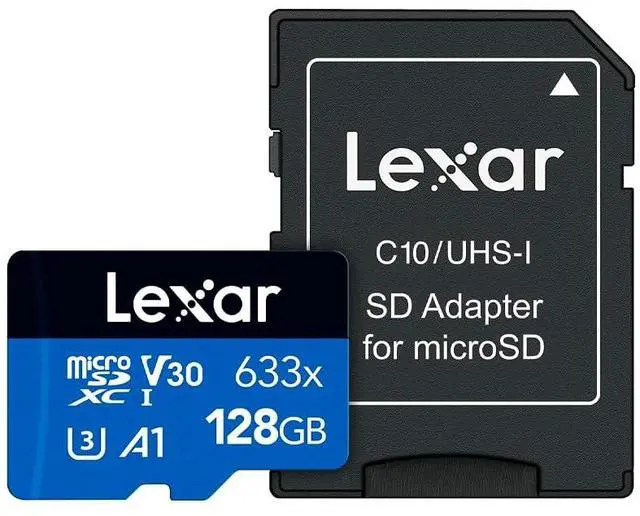 Designed for your smartphone, tablet, or action camera, Lexar High-Performance BLUE Series 633x microSDHC/microSDXC UHS-I cards let you quickly capture, playback, and transfer 1080p Full HD, 3D, and 4K video, as well as the highest-quality movies, photos, and songs. These high-capacity, Class 10 cards leverage UHS-I technology to deliver high-speed performanceup to 100 MB/s. This 128 GB premium memory solution includes an SD adapter for easy file transfer and provides the speed and space you need to capture more adventure on the go.