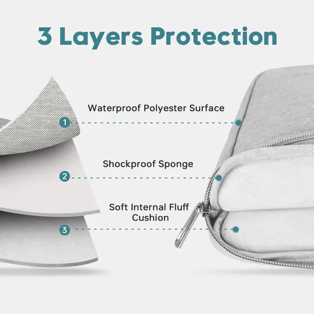 Multi-layered Protection: Made from a 3-ply material structure, a waterproof top layer, a thickened sponge with excellent shock absorption in the middle and a soft plush lining on the inside, all of which protects the surface from bumps and scratches