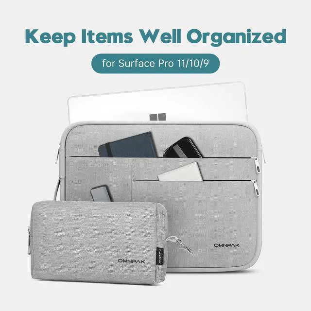 Large Capacity:Slim and lightweight laptop sleeve for microsoft surface pro has 3 front pockets and 1 large back pocket and comes with an extra accessory pocket to storage mouse, headphones and power cord or other essentials.