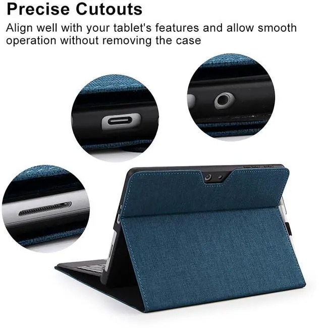 Precise cutouts enable users to have full access to all features (Cameras, Speaker, Ports and Buttons). Note: this surface go case can only be used with a single-port docking station, not a