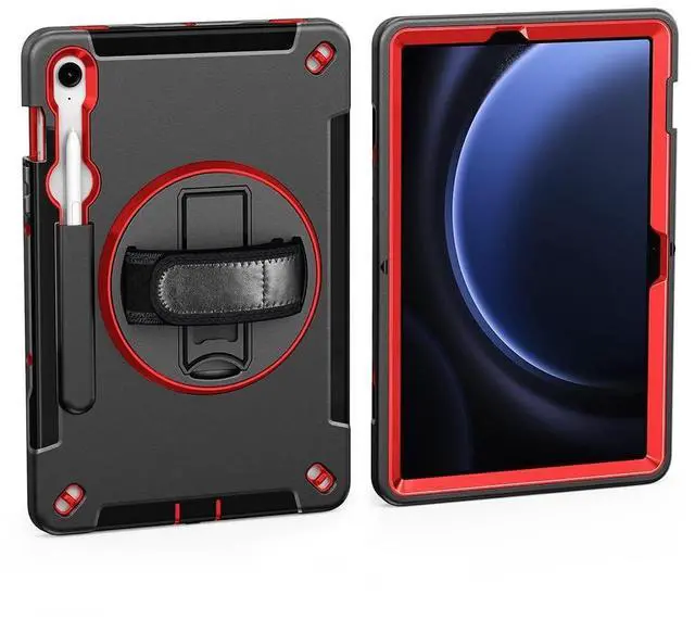 PERFECT FIT & WIDE COMPATIBILITY: Seamlessly fits Galaxy Tab S10 FE 10.9 -inch (2025, SM-X520/SM-X526B), Tab S9 11-inch (SM-X710/X716B/X718U), Tab S9 FE 11-inch (2023, SM-X710/X716B/X718U), and Tab S10 Lite 11-inch (2025, SM-X520/SM-X526B). Ensures precise fit, full access to all ports, buttons, and camera. ^^ Dual-Layer Military-Grade Protection Combines a shock-absorbing silicone inner shell with reinforced corners and a rigid polycarbonate outer shell. Passed drop tests on concrete surfaces to protect against impacts during daily use or travel. ^^ 360 Rotating Stand for Hands-Free ViewingFeatures an aircraft-grade aluminum alloy rotating shaft with precision bearings for smooth 360 rotation and 180 folding. Locks securely at 30/60/90/120 angles, making it ideal for video calls, typing, and watching tutorials in both landscape and portrait modes. ^^ Enhanced Corner Protection Comprehensive drop, scratch, and impact protection with reinforced corners and raised edges safeguarding camera. ^^ Full-Body & Raised Edge Protection Raised bezels protect the screen and camera from scratches. Includes built-in dust plugs for the charging port and headphone jack. Compatible with most tempered glass screen protectors.