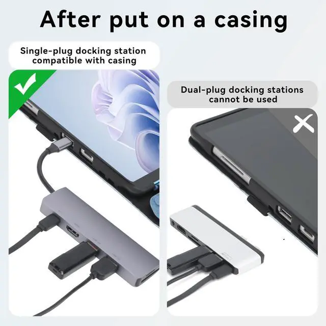 Note: this surface pro 7+/7/6/5/4 case can only be used with a single-port docking station, not a dual-port docking station. ^^ The cover can be unfolded as a cushion for the keyboard, protect the keyboard from scratches. While both Microsoft Sursface Pro 12.3" tablet itself and the keyboard will be secured with a magnetic closure when close the flip cover. ^^ Precise cut-outs with full access to all controls and features without taking off the case. Designed with a smart holder for stylus / pen (stylus NOT included).