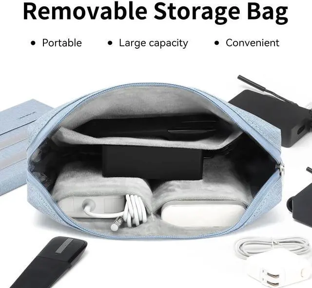 ELECTRONICS ACCESSORIES STORAGE BAG: This bag is attached to the back of the case by velcro, will not fall off and will not cause affection to the daily Surface using. Inside the bag, there are pockets and enough capacity to hold your Surface accessories such as docking station, mobile hard drive, mouse, charger, etc. The soft inner lining effectively protects your accessories. This bag can solve the problem of carrying several bags when you work anywhere.