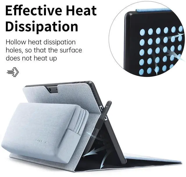 ^^ ANTI-OVERHEATING CASE: Dont worry about your Surface overheat issues anymore, We designed the part that holds the laptop as a hollow style, which can well ventilate and dissipate heat for your Surface.