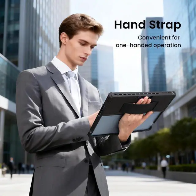 Hand Strap: This case for Surface Pro 11 /10 / 9 with a elastic hand strap on the back. Easy to hold in one hand while standing or walking. Prevent your tablet from falling