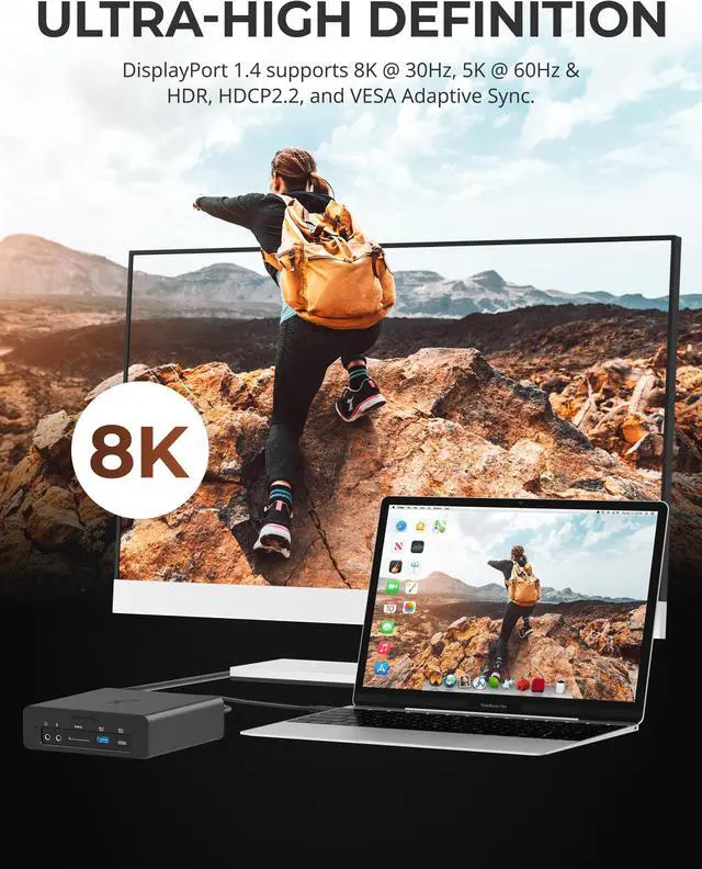 1 DisplayPort 1.4 for 8k @ 30Hz, 5K @ 30Hz, and lower resolutions. DisplayPort supports HDR, HDCP2.2, and VESA Adaptive Sync (FreeSync) where available.