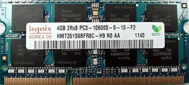 ManufacturerHynix Manufacturer Part # HMT351S6BFR8C-H9 Memory Type SODIMM Capacity4GB Pins204 Pin Bus TypePC-10600 Cycle Time 1.5 ns CasCL9 Data Transfer Rate1333Mhz Memory Clock166Mhz Rank 2 Voltage 1.5