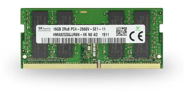 • 16GB ( 1 x 16GB ) DDR4 2666Mhz Non-Parity/Non-ECC Unbuffered SODIMM Memory 260 pin Dual Rank Module.