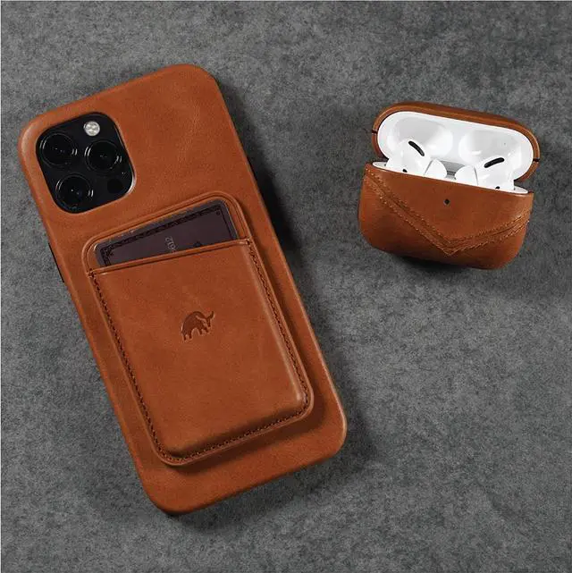 But maybe most importantly, you don't have to remove your AirPods from our case when they need to be charged wirelessly since it's compatible with all common chargers. The two-piece design makes it easy to open and close, so you won't fumble when you're reaching for them when you're on-the-go. Not only does our case offer premium protection, but it gives you an elevated aesthetic. The finish on the leather will come to life as it ages over time, creating a patina unique to you and your lifestyle. Our cases also make great gifts for those with impeccable taste and high standards.