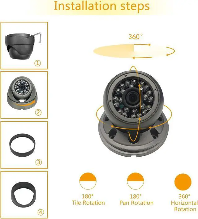 Package included: 1 x Dome camera 1 x Bag of mounting screws 1 x Manual