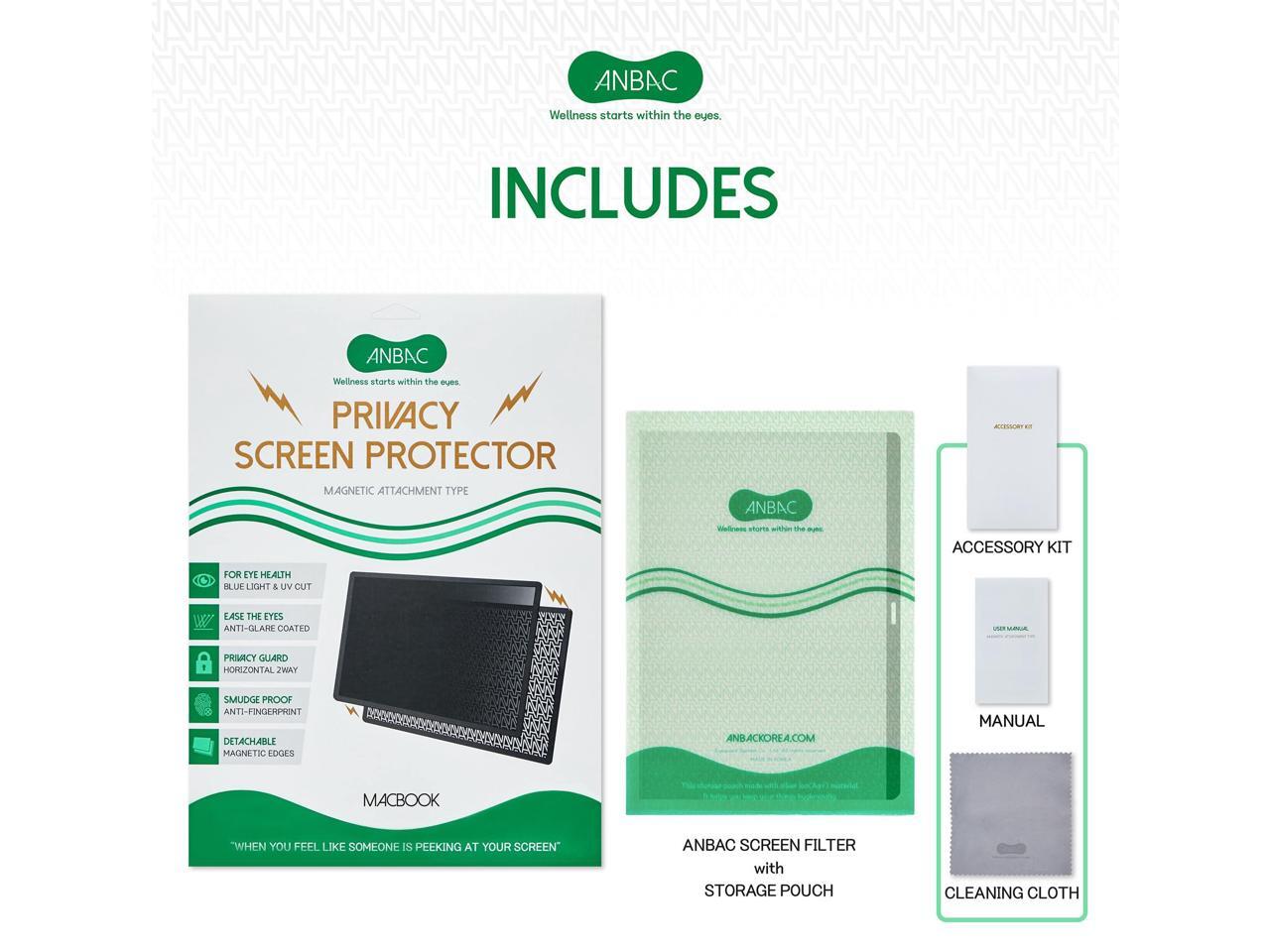 ANBAC Laptop Magnetic Privacy Screen Protector for 13 inch MacBook Pro (2016-2022, M1/M2) and MacBook Air (2018-2020, M1) - Blue Light Blocking Security Screen Shield, Anti-Smudge UV Filter