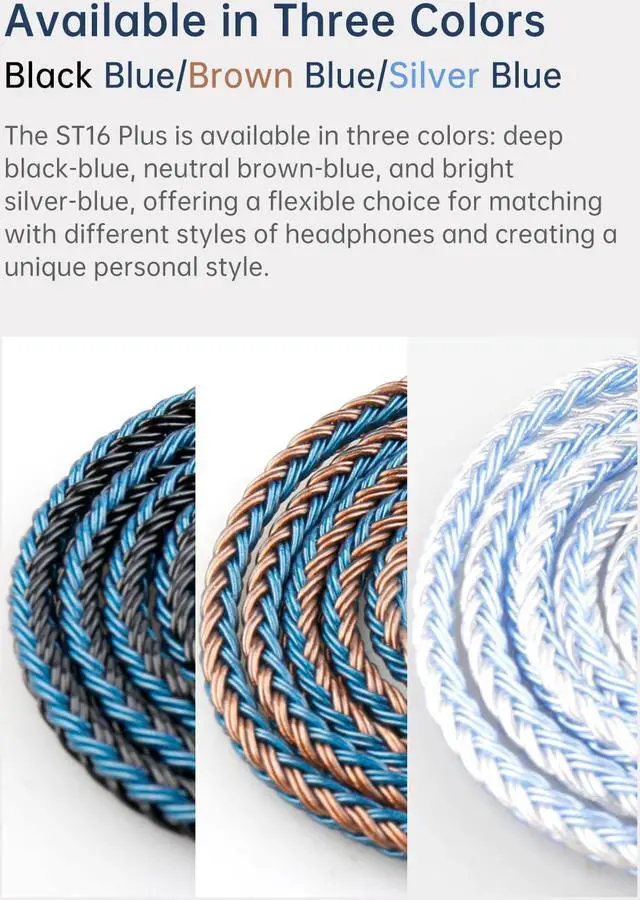 • [(Improvement on Sound Quality)] The ST16 Plus in-ear replacement earphone cable adopts 14-core 5N high-purity single-crystal copper-silver plated wire cores, totaling 224 cores per strand. The fusion of single-crystal copper-silver plated wire fully leverages the advantages of copper and silver metals: Copper provides powerful low-frequency and cohesive mid-frequency, while silver enhances the high-frequency performance details, making the audio more vivid. The high-purity material can improve the transmission performance of the wire. The 23AWG diameter and 16-strand braided structur